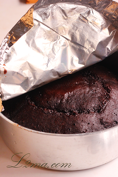 5 - يترك حتى يبرد ثم يرفع ورق الألمنيوم و يقدم .